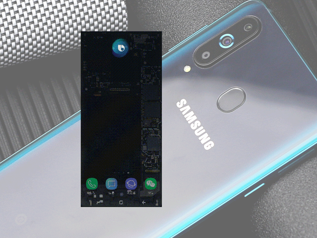 三星Galaxy A8s的深绿色金属边框和后背的渐变色结合在一起毫无违和感,可惜不是一体成型,连接处有比较明显的缝隙。两侧集成了几颗主流的实体按键,右边是电源键和音量调节键,左边除了SIM卡槽还有一个Bixby语音助手激活键,单点即可激活。