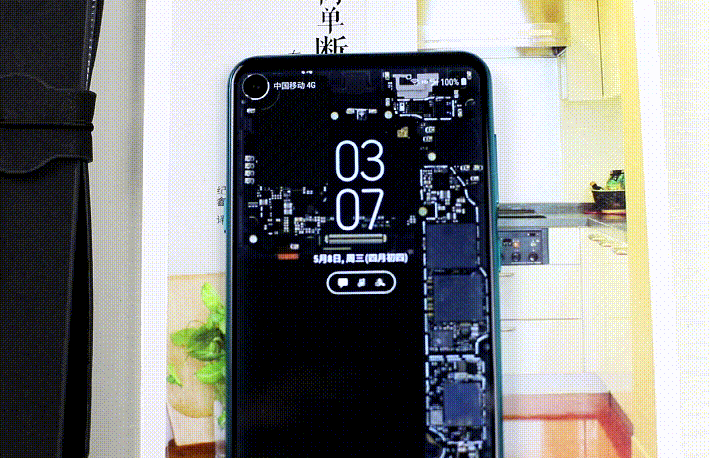 三星Galaxy A8s是首款HID屏幕机型,屏下挖空技术的优势在于既保提升了屏占比,又不影响前置镜头的功能。息屏状态下,三星Galaxy A8s的这颗圆孔与机身浑然一体,被隐藏的非常好。机身尺寸约158.4*74.9*7.4mm,重约173g,手机轻薄,金属中框与圆润的倒角让这台三星Galaxy A8s的握持感很舒适。