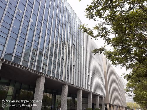 Galaxy A40s超广角不仅达到了可用的程度,甚至在正常光照下还不错。但是,在逆光场景下画面就会变黑,丢失过多的细节。而且,虽然没有专门的防畸变开关,但是Galaxy A40s的边缘畸变效果处理的还算不错。