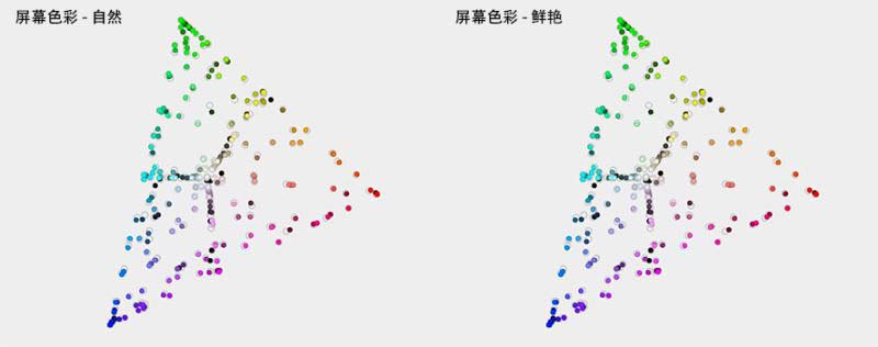 而在色彩偏离度方面,当一加手机7 Pro的屏幕色彩模式设置为自然时,其色彩偏离度的平均ΔE为0.45,99% ΔE则为1.56;而当其屏幕色彩模式设置为鲜艳时,其色彩偏离度的平均ΔE为0.5,99% ΔE则为2.21。从这里可以看出当手机屏幕颜色模式设置为自然时,一加手机7 Pro的色彩偏离度确实会更低,但不管是哪一个成绩,从数据上看都是非常出色的,一加手机7 Pro不仅有着广色域,在色准上的表现也让人满意。