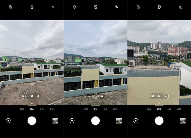 在拍摄界面上,一加手机7 Pro直接给出了广角、正常、长焦三种拍摄模式,我们在同一个地点拍照就可以很清楚地看到三种拍摄模式下的图像构成有什么不同。