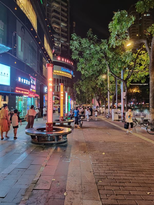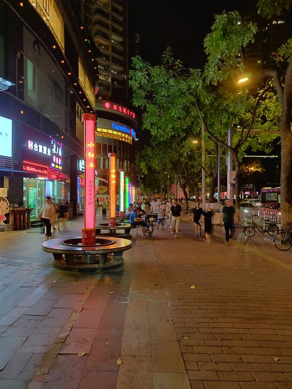 在夜景模式下,一加手机7 Pro在拍摄灯光的时候会偏亮一些,因此灯光的颜色反而不如一加手机6T的真实,但是在图像细节上会更加清晰和明确,例如上图街道中的污渍,一加手机7 Pro很好地展现了出来,但一加手机6T则几乎看不见了。不过由于两款手机的夜景模式都是通过多张照片合成得来的,因此如果你的画面中有运动物体,那么最终出片的时候,各种残影几乎不可避免,这方面就需要一加进行更多的优化来解决了。