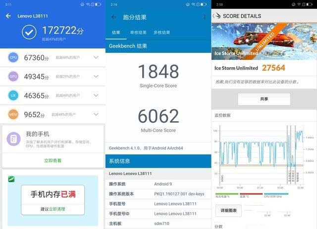 为了让大家看的更加直观,通过测试平台对联想Z6青春版进行了跑分测试: