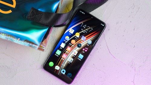 realme X青春版拥有电光紫和氮气蓝两种配色,本次我们拿到的是其中的电光紫。它的背部采用了紫黑相间的渐变色设计,虽然材质为塑料,但它依然拥有着不错的质感,而且塑料材质的握持感还是不错的。