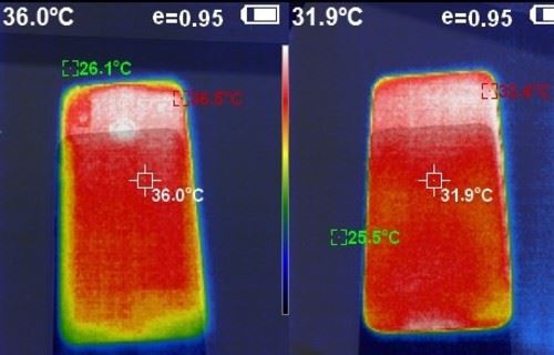在开始游戏前,我们把游戏的画面设为了高清画面+高帧率+经典风格+不开抗锯齿+阴影开。在经过21.3分钟的激烈战斗之后,realme X青春版背部最高温度为36.5度,屏幕最高温度为32.4度,热量分布均匀,散热效果依旧相当不错。就千元机的价位来说,realme X青春版绝对能带给你越级般的游戏体验。