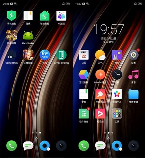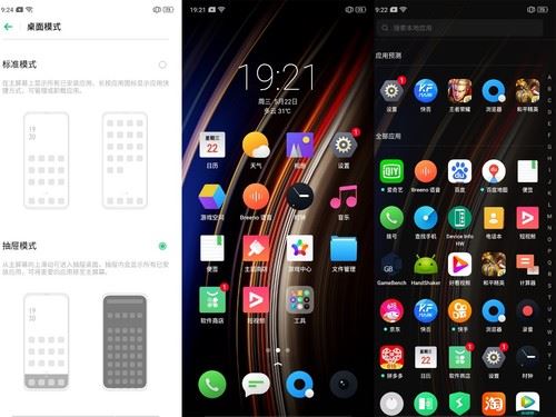 realme X青春版搭载了最新的ColorOS 6.0,对于ColorOS 6.0相信大家都已经有了一定了解,在这里小编也不做过多赘述。只是有三点需要稍微提一下。第一点就是ColorOS 6.0新增了类似于原生的抽屉模式。用户可以将各类应用都放置于抽屉中,这样就可以让桌面看上去整洁许多。