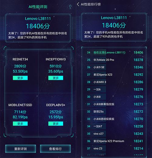 同时,骁龙710所配备的Hexagon 685 DSP与Spectra 250 ISP也是目前市面商用产品中仅次于旗舰骁龙855的次旗舰配置,高通本身就是使用CPU+GPU+DSP整合来完成AI运算及处理,三方面都有明显提升,其所配备的第3代AI Engine自然也有着强力表现。鲁大师AI测试中四种识图训练速度都很快,得分18406,在目前机型数据库中排名24。
