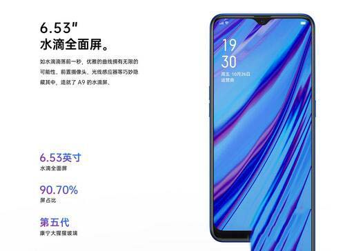 而OPPO A9则采用6.53英寸水滴屏,屏占比高达90.7%,屏幕材质采用的是康宁大大猩猩玻璃,外观方面来看,继承了OPPO的优秀基因,整体观感也是很漂亮的说。