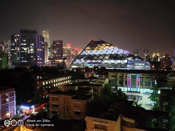 不仅如此,vivo Z5x还拥有夜景模式,在打开后能够增加画面的进光量,通过多帧合成算法让画面更加清晰明亮。从样张中我们可以看到,即使是在全黑的情况下,画面依旧清晰亮丽,建筑的细节保留的很好,画面纯净噪点不多。
