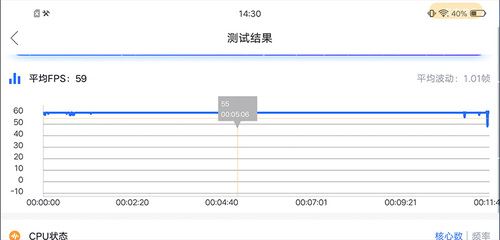 游戏过程中使用快否记录游戏帧率,表现令人满意,全程极少出现波动,基本紧贴60fps线条本身呈一条直线,最低帧率也达到了55fps,非常流畅,即使用户是对操作要求细微的刺客类角色也绝不会因为设备被拖后腿,能够充分发挥自己的实力,而且vivo Z5x发热控制较好,单局王者荣耀游戏下来手机甚至没有明显发热。
