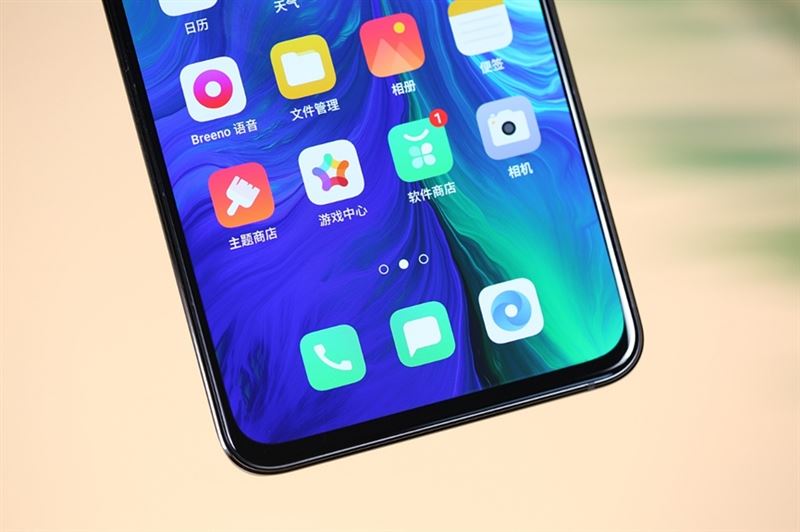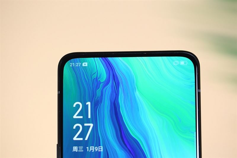 OPPO Reno向人们展示了采用机械结构全面屏的另一种样子,屏占比93.1%,表面覆盖第六代康宁大猩猩玻璃。