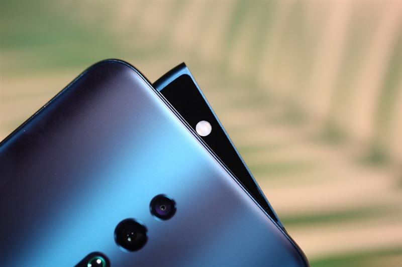 为了实现全面屏,OPPO Reno采用了侧旋式机械升降结构。当你打开前置摄像头的时候,额头相机部分旋出。前置摄像头和补光灯以及后置闪光灯、听筒都容纳其中。