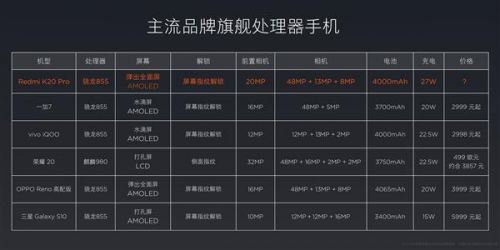 雷军说,“Redmi K20,就是要K.O.一切伪旗舰!”,现场PPT上其对标的是一加7、荣耀20、OPPO Reno和vivo IQOO,那么将来小米品牌的新旗舰会如何K.O.掉友商产品呢?我们拭目以待。