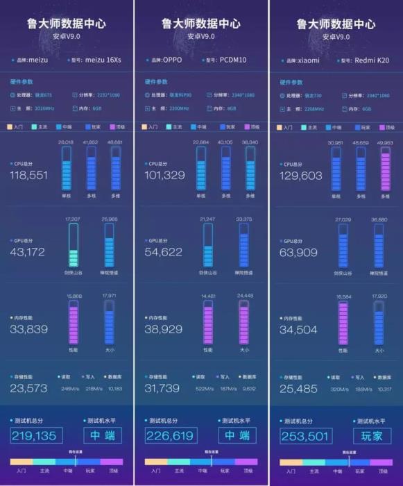魅族16xs/红米K20/RenoZ对比介绍