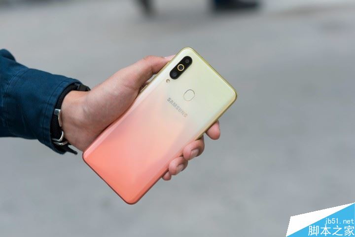 三星A60元气版的首发配色共有丹宁黑、浅滩蓝和暖阳橙三种,笔者也是分两次体验到了丹宁黑和暖阳橙两种配色。同样是渐变色,丹宁黑更容易因为光线角度再额外看到一些镀膜的色彩,但笔者其实还是更推荐暖阳橙这个配色,少女心爆炸。由于后盖并非纯平,A60元气版的后盖材质选用的是塑料而非玻璃,所以建议大家在日常使用的时候尽量佩戴保护套来使用。