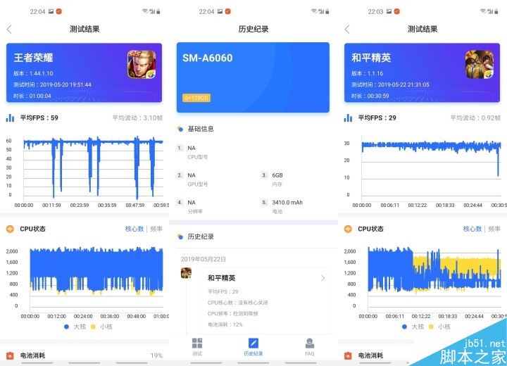 王者荣耀我们是以最低画质、多线程+高帧率模式进行测试的,测试结果如下。可以看到对于王者荣耀这款游戏,在最低画质下A60元气版还是可以较好地驾驭的。