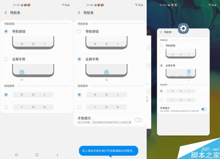 不只是One UI的全面屏手势我不太喜欢,目前所有厂商所有手机的所谓『全面屏手势』笔者都不太喜欢。针对One UI三星给出的全屏手势相信很多朋友已经不陌生了。在这里笔者也分享一个小tips:如果你开了One UI的『全屏手势』,那么你一定要记得开启手势提示,这样你就可以通过向右拖拽主屏幕条来切换你最近的后台应用了,该功能在体验上比较类似谷歌的小白条。