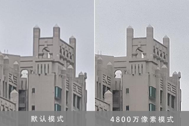 上面的样张对比图为等比例放大,可以清楚看到两种模式下的区别。4800万像素模式下的样张放大后细节更丰富,涂抹感更轻,不过噪点会有所增加。