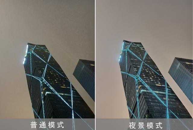 夜景模式下天空更纯净,暗部细节也更丰富。