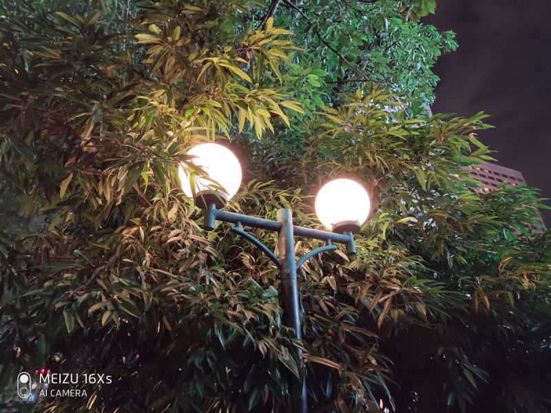 到了光线较弱或是夜间场景下,魅族 16Xs 的高解析力有些下降,不过好在即便是解析力有所下降,其还是能保证画面的纯净度,带来较为不错的夜间观感样张。另外需要注意的是,在面对光源复杂的场景时,魅族 16Xs 出现了和日间在高反差场景下的同种问题。