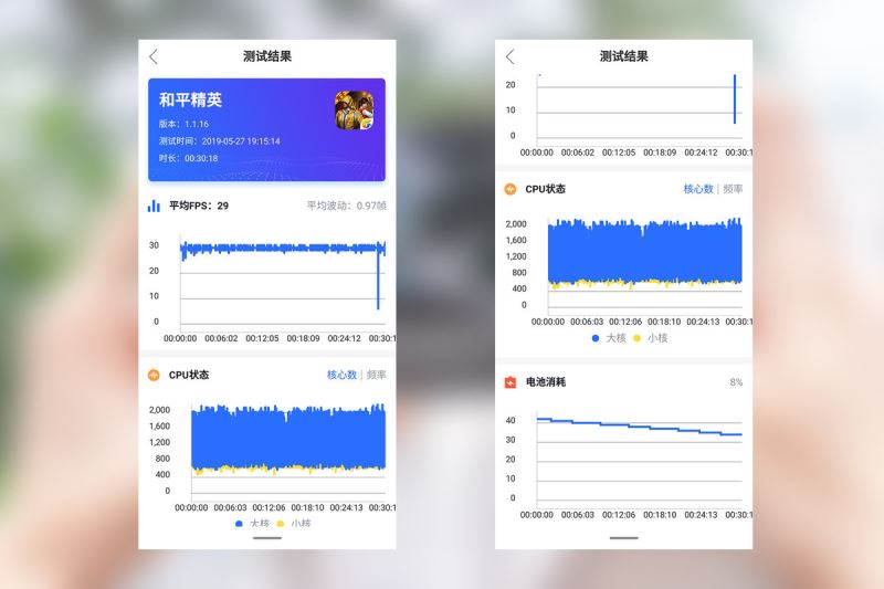 实际的游戏体验层面,在游戏可设置的最高画质下,魅族 16Xs 的游戏体验还算理想,包括整个游戏的画面稳定性以及发热控制。另外根据性能监控情况来看,魅族 16Xs 针对 CPU 调度较为积极,在长达 30 分钟游戏的过程中,骁龙 675 的大核心都有参与。