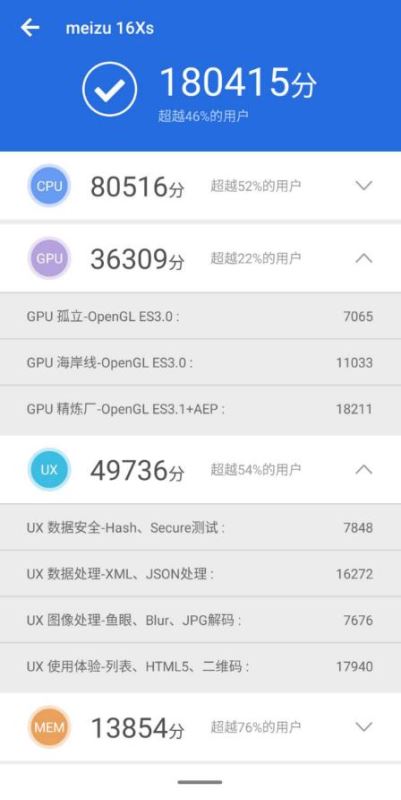 这是鲁大师的评判总结,其对于魅族16Xs的性能评价算是相对中肯的——整体性能高端、旗舰未满,恰好居于准旗舰的水平阶段。