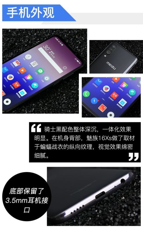 在视觉效果上,魅族16Xs骑士黑背部粗看上去就只是黑色主调,非常低调深沉。但如果你仔细看的话,你在黑色中能够看到骑士黑特殊的蝙蝠战衣纹理,视觉效果看上去十分顺滑紧密。