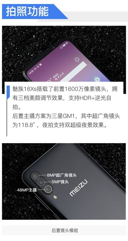 在拍照方面,魅族一直都显得极为克制,因此此次魅族16Xs采用三摄设计还是能够让人眼前一亮。