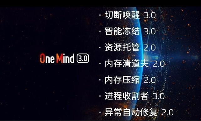 One Mind 3.0并没有功能入口,而是一种后台机制。它包括了对后台软件之间唤醒的切断、后台智能冻结、内存清理、内存压缩等多种功能,能够对后台软件的运行进行更加智能的调度控制。