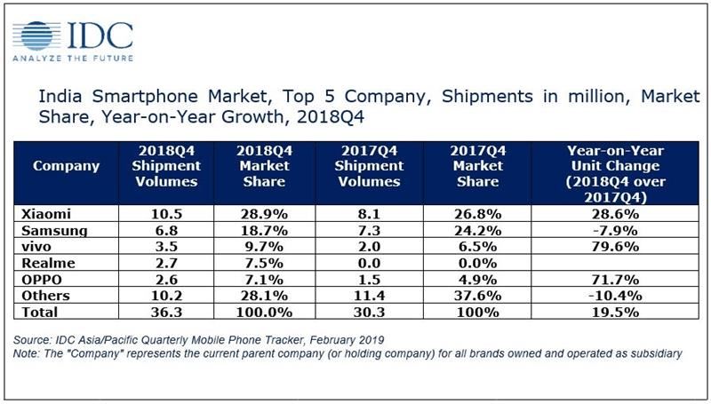 在印度市场,realme取得的成绩是惊人的,2018年第四季度,realme在印度销量达到400万台,排名第四,而此时realme才成立不到半年时间。