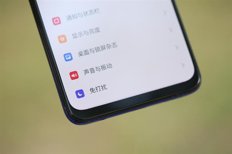 首先映入眼帘的是正面没有开孔的屏幕。realme X正面采用一块6.53英寸三星AMOLED屏幕,材质为康宁大猩猩五代玻璃,分辨率为2340*1080,支持DC调光,支持屏幕指纹解锁。采用机械结构实现全面屏,这在千元机中算是凤毛麟角了。