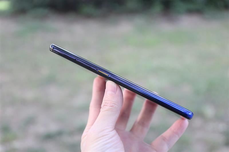 这次realme采用的是上厚下薄的曲面设计,最厚处9.6mm,最薄处8.6mm,整体大概差了1mm。这样的设计抵消了一部分机械结构带来的厚重感,对于握持部分的舒适度也有提升。