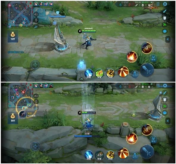 《王者荣耀》开启高帧率模式,打开游戏自带的帧率显示。游戏全程都保持在60帧,团战时候也没有掉帧现象。