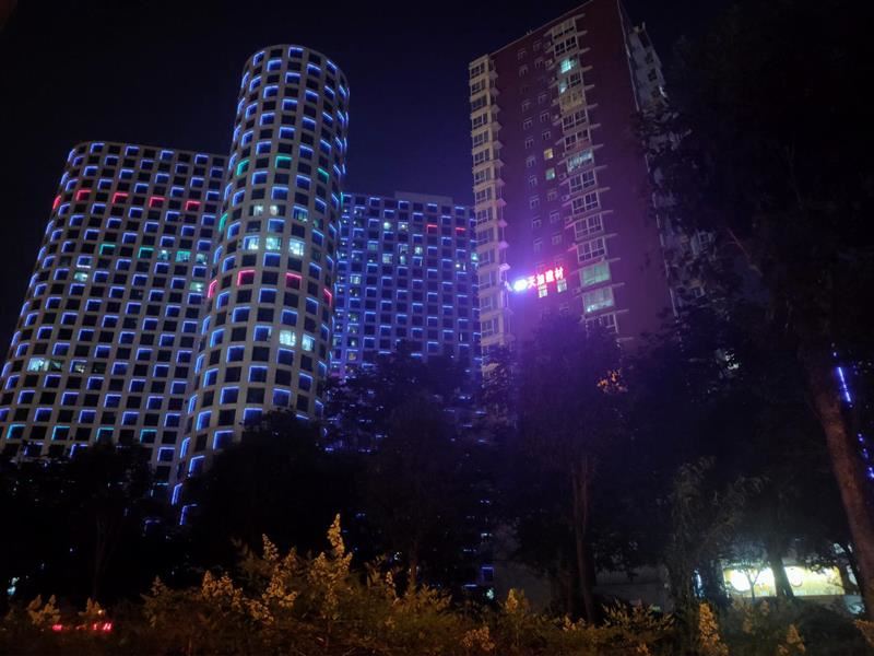 在白天进光量充足的情况下,细节和动态范围表现都很好。晚上打开超级夜景模式后,拍摄的照片也很不错,随手拍拍还是能达到发朋友圈的水平的。整体还是有上升的空间,希望在以后的系统版本升级中挖掘出IMX586更强的能力。