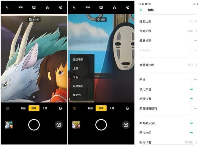 相机界面十分简洁,AI、HDR等选项不需要用户手动设置,AI智能场景会自动帮你识别所拍摄的景物,比较适合打开相机就拍照的人。即使点开相机设置界面也不会出现很多的相机玩法,功能性上可以说是缺失也可以说是针对用户群体有意而为之。