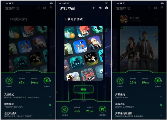 游戏空间也颇具特色,我们下载的游戏都会在里面显示,做到统一管理。一共提供了三种性能模式,在开启竞技模式后可以提高性能、帧率和触摸相应时间。
