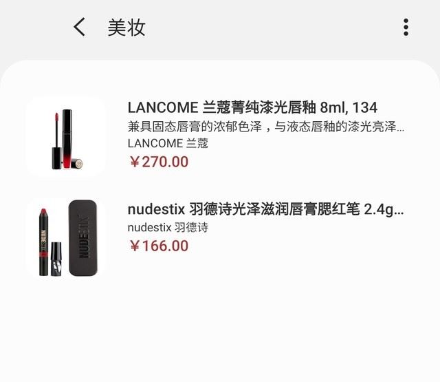 如果你对化妆效果满意的话,OK,你只需要点击产品就可以看到它的价格,再次点击就可以立马跳转电商链接。从线上试看妆容到购买线下实际使用,三星A60这个功能实现了完美覆盖,这下剁手又多了一个理由……