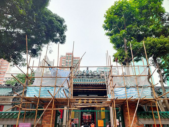 对于一些场景,4800万像素还能起到救急的作用。像在修葺的天后古庙前,本想来一张大场景的照片,差点连牌匾都拍不清楚。