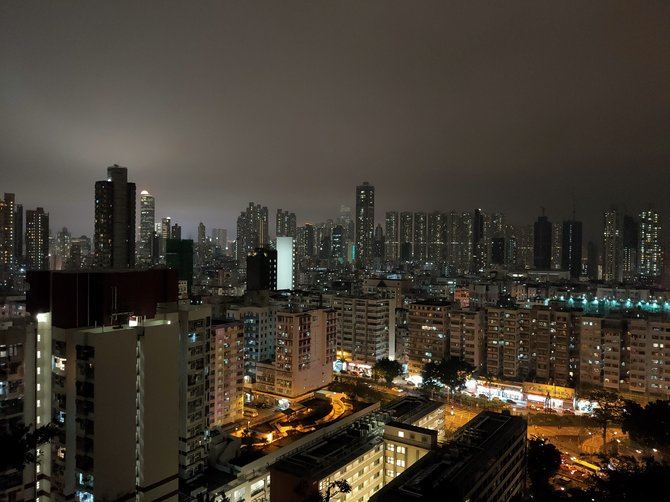 打开超清夜景模式,同样的场景只需手持拍摄。不但画面亮度得到提升,可以留意山下店铺的高光很好压制了下来,而暗部提亮的效果不会过爆。如果照片的色温再温暖一些,那么照片看上去就会更柔润了。