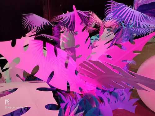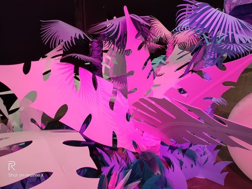 实拍体验也和我们的判断基本一致,我们即使手动开启超级夜景模式,其拍摄耗时也比正常时候更短,环绕快门按钮的进度条飞速就走完了,这说明realme X也判断当前环境并不需要触发太高规格的超级夜景合成。我们能看到两张样张的表现非常接近,唯一能直接观察到的,可能就是叶片底部的板材拼接痕迹了,超级夜景模式中会更清晰锐利一些,这主要是多帧合成与算法带来的优势。
