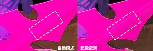 环境更暗一些的街道夜拍,之前说到的优势表现得更为明显。比如道路左侧迎向画面的车灯以及右侧最前端的路灯,在自动模式之中都已经明显高光溢出,导致其周围一定范围内画面有效信息丢失,这点在超级夜景模式中得到了很好的解决。同时,我们也能看到大楼的轮廓、树叶等暗部的细节,在超级夜景中表现也更好一些,那么咱们再来看更多一些超级夜景的样张。