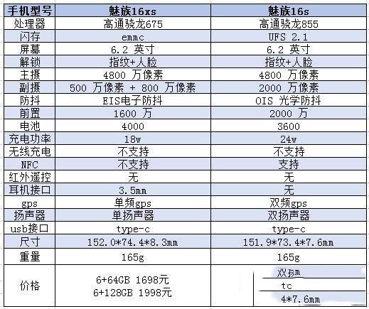 我们先来看看魅族16xs和魅族16s的相关参数配置情况