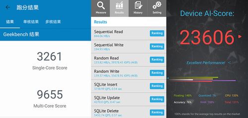 从软件测试成绩来看,荣耀20 PRO在Geekbench中单核跑分3261,多核9655,苏黎世理工学院的AI Benchmark也拿到了23606分的高分,在当前排行榜中名列前茅。