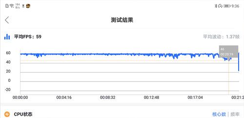 游戏中使用快否记录游戏表现,可以看到虽然决赛圈帧率出现了一定的波动,但最低帧率也有46fps,平均帧率59fsp,平均波动1.37帧,实际游戏体验保持流畅。