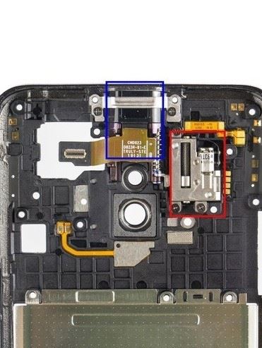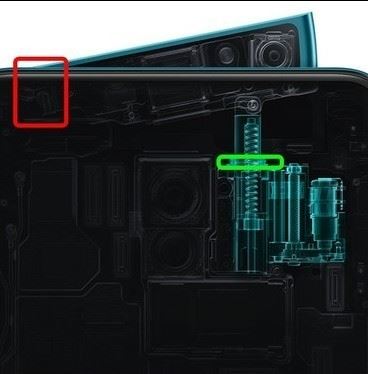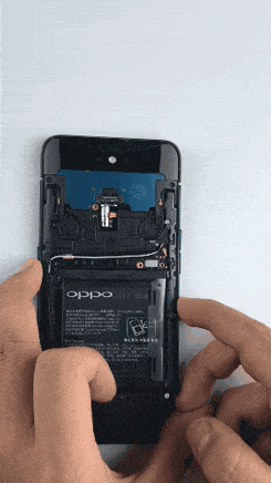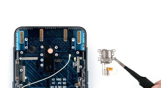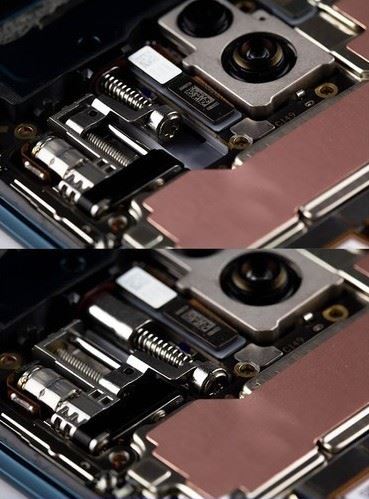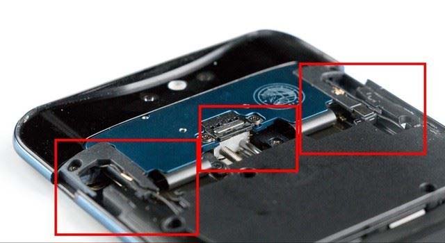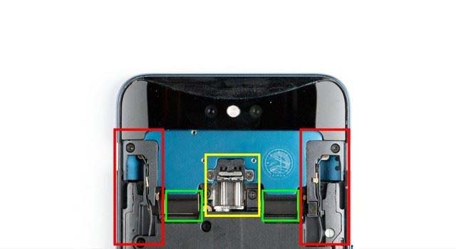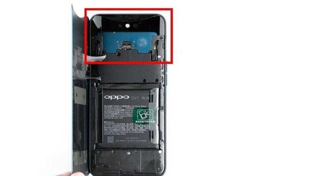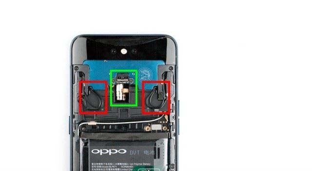 掀开背壳,我们可以看到OPPO Find X的机身采用了三段式结构,红框内的部分应该就是双轨潜望结构了。