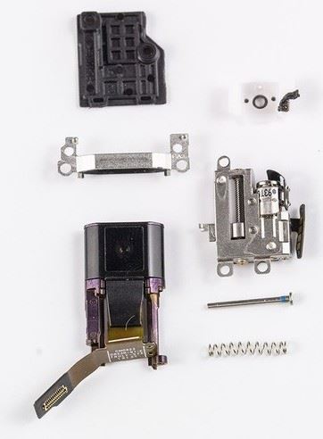 下面,我们来看看中框部位的升降机构,红框部分是升降马达,蓝框部分是镜头部分。