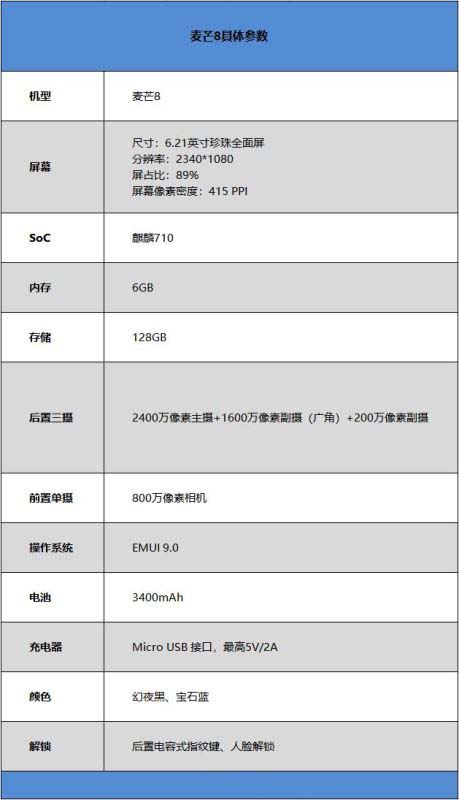 和前代同样,麦芒8依然将拍照、续航和6+128G大内存这些基础体验作为最核心的侧重点。并且,此番的全新的麦芒8相比前代从内而外都进行了改变。集齐了珍珠全面屏、超广角三摄等热门设计,再加上AI和GPU Turbo等华为所专擅的特色长板,其综合实力非常高。
