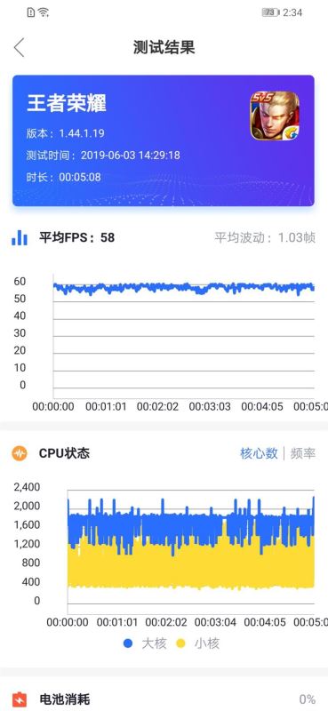 笔者选用了玩家众多的手游《王者荣耀》进行游戏测试,打开高帧率。从84%电量开始,游戏30分钟,剩余电量73%,消耗电量11%,照此预估,连续玩《王者荣耀》接近5个小时问题不大。