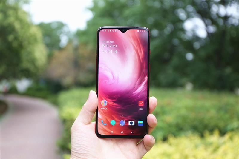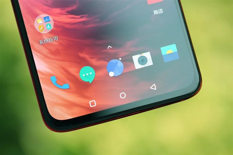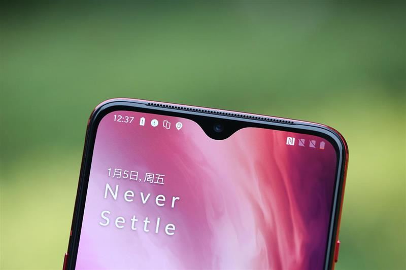 正面外观:一加7采用6.41英寸三星Optic AMOLED水滴屏,分辨率2340x1080,显示效果出色。