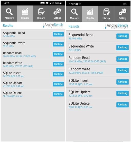 AndroBench是一个基础测试应用,可以测量Android设备的4K随即存储能力,包括内部和外部应用。